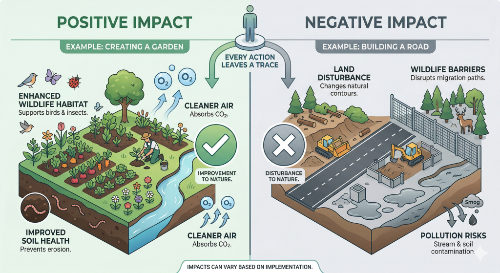 5. Environmental impact – This is simply a very elaborate way of asking “what is the effect on the environment?” We cannot do a single thing without leaving some trace on nature. An example of the impact of infrastructure development includes building a road, which will definitely change the environment by disturbing the land, wildlife, and perhaps polluting a stream during construction. The installation of a garden will also affect the environment; however, the impact of the garden is positive. There are impacts from infrastructure development, but they can be positive or negative depending on how they affect the natural environment.